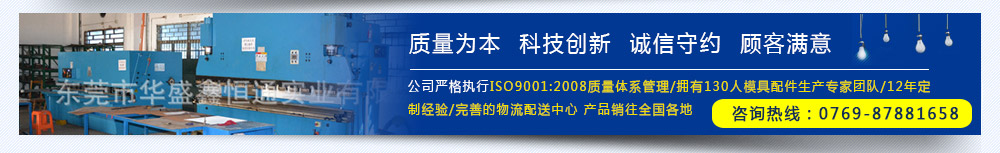 東莞市華盛鑫恒通實業(yè)有限公司成立于2003年08月,總占地面積6200㎡,現(xiàn)有員工130人(其中本科以上技術研發(fā)人員8人),是一家致力于各種行業(yè)清洗架、鋼化架、模組頂針測試治具的專業(yè)非標夾、治具設計制造商。公司擁有CNC加工中心(北京精雕)、沖床、剪板機、折彎機、線切割機、氬弧焊機、點焊機、碰焊機、車床、銑床、磨床、鉆床、攻牙機、超聲波清洗機等不同種類不同規(guī)格、10T-200T等各類加工設備90臺。公司嚴格執(zhí)行ISO9001:2008質(zhì)量體系管理,品質(zhì)檢測儀器分別有:現(xiàn)代化高端檢查設備投影儀(2.5次元檢測儀)、測硬器、鹽霧測試機若干。等經(jīng)過長期的摸索,擁有一批高素質(zhì)的生產(chǎn)隊伍及專業(yè)的工程技術人員,設計各種配套設施。 |